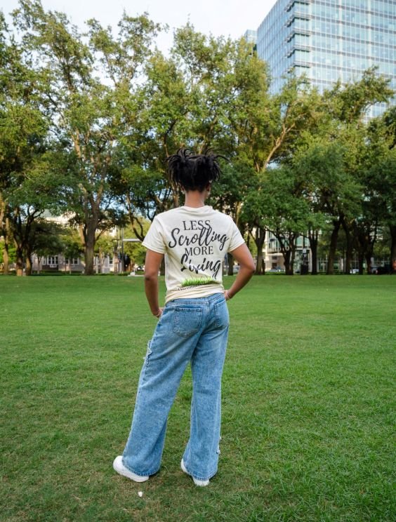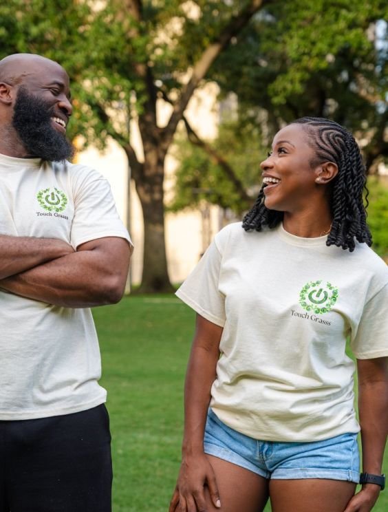 Featuring a clean, modern design with the Touch Grasss logo front and center, it’s more than just a shirt — it’s a symbol of fun, friendship, and stepping away from the digital grind to connect in real life.